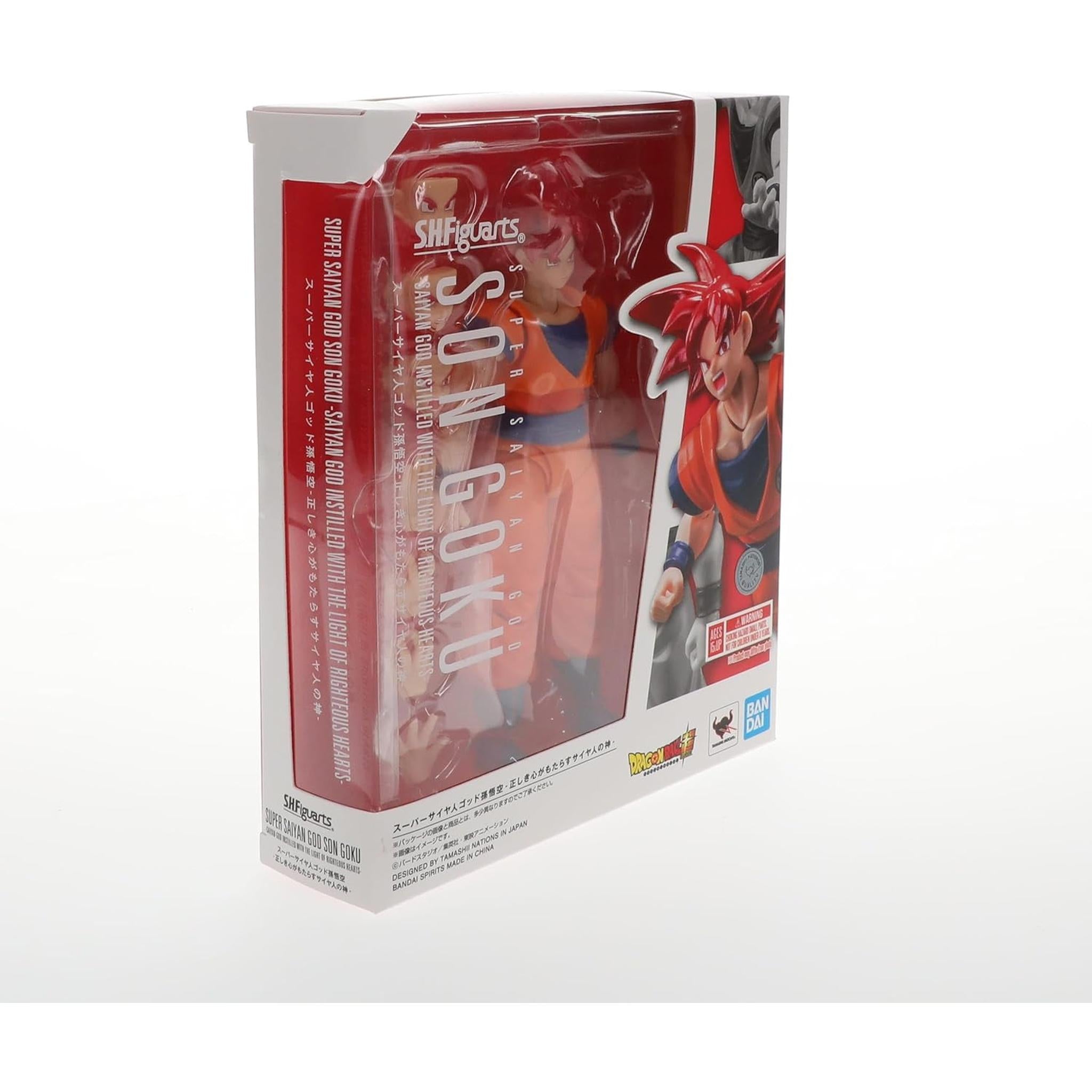 TAMASHII NATIONS SH Figuarts Dragon Ball Super Super Saiyan God Son Goku - The Saiyan God of a Righteous Heart - Approx. 140mm PVC & ABS Painted Movable Figure