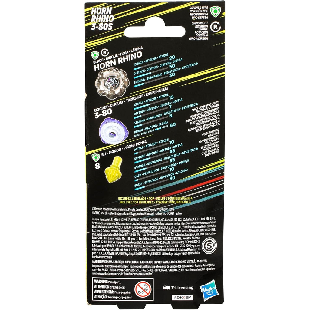 ベイブレード X ホーン ライノ 3-80S ブースターパックセット 防御タイプ 右回転トップ 8歳の男の子と女の子のためのバトルトップおもちゃ