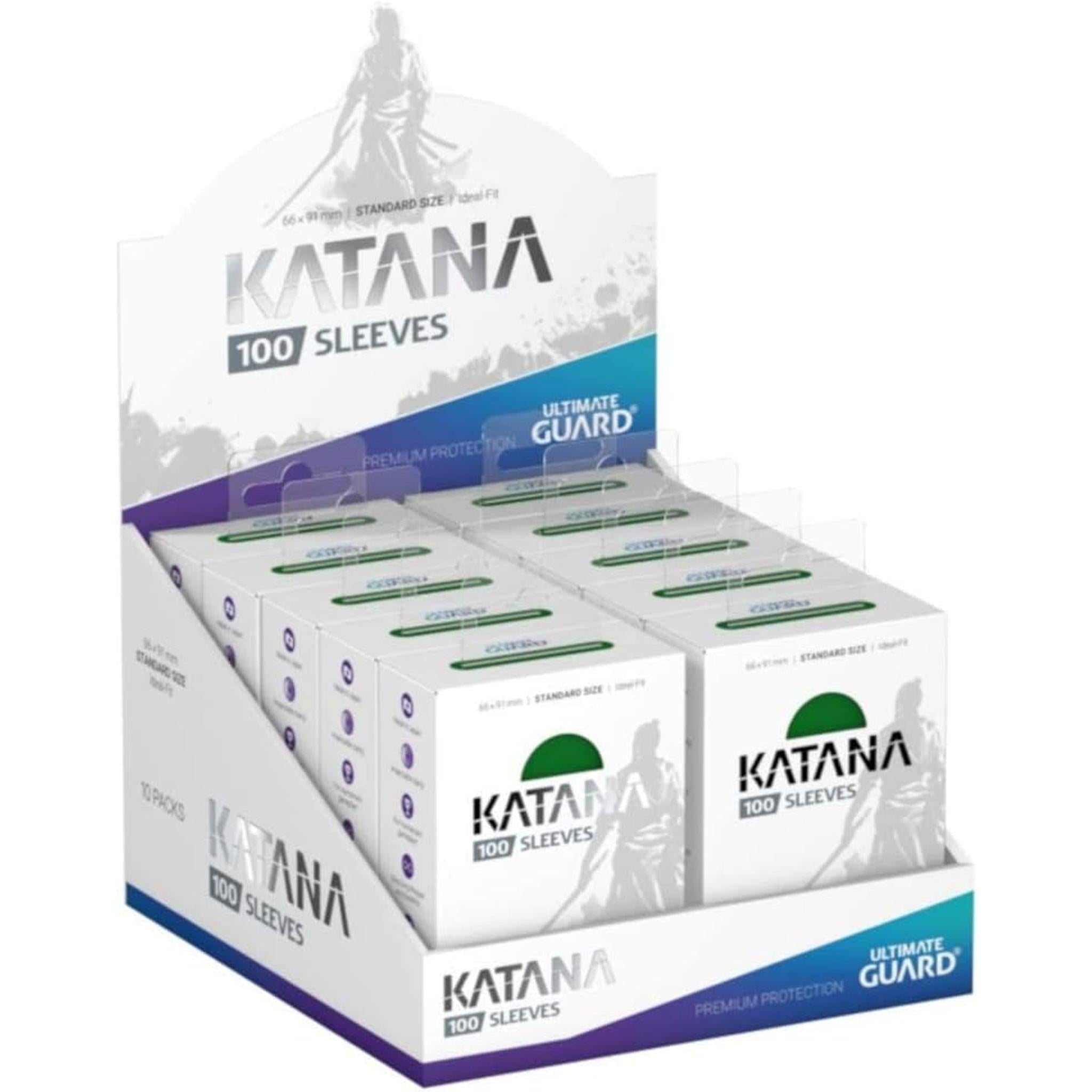 Ultimate Guard (アルティメットガード) Katana Sleeves Standardstørrelse Grønn 100 stk × 10 pakker med kortomslag og displayboks